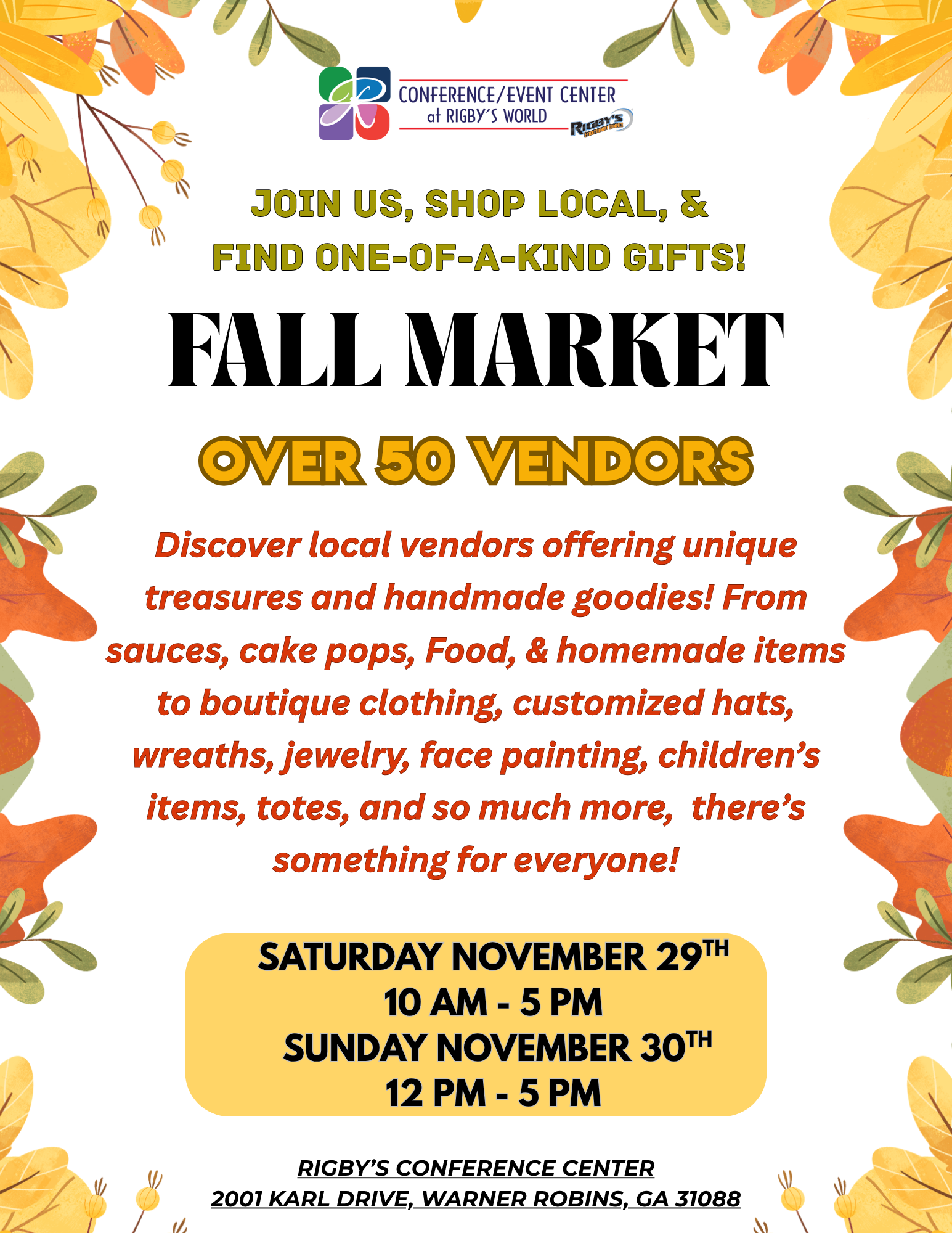 Rigby’s Conference Center is Middle Georgia’s premier venue for weddings, banquets, meetings, corporate events, and private celebrations. With flexible spaces, professional support, and endless amenities, we make planning easy and stress-free.